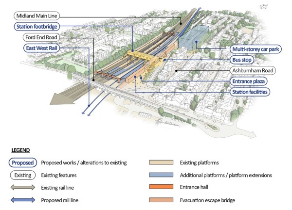 2.1.3 Some of the existing stations between Oxford and Bedford would need to be modified, with platforms widened and extended and new and improved access provided along with other new facilities such as expanded car parking. On the Marston Vale Line between Bletchley and Bedford, existing stations would be consolidated or upgraded.