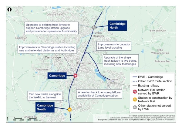 A.6.6 The route update announcement also confirmed that the southern approach into Cambridge remained EWR Co’s preference. The southern approach into Cambridge would provide direct access to Cambridge South and the biomedical facilities on the Addenbrooke’s hospital campus, with onward connection to Cambridge station.